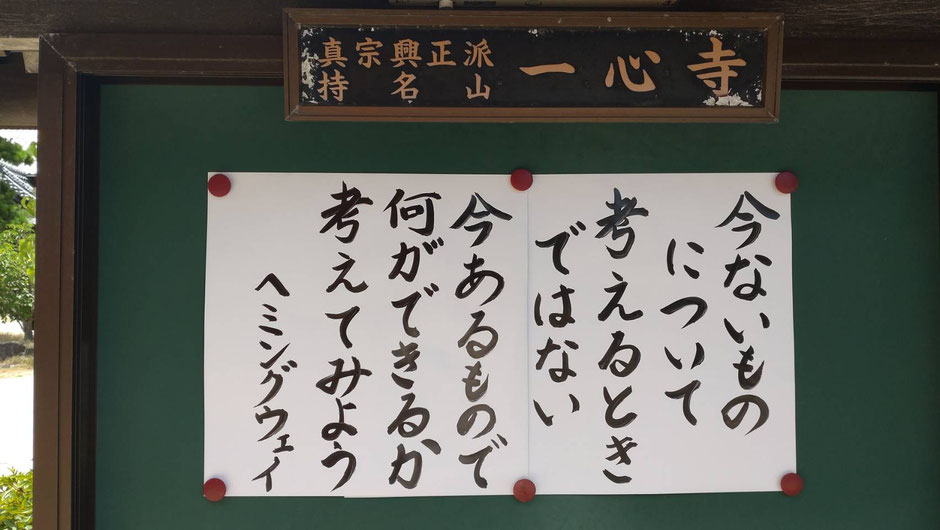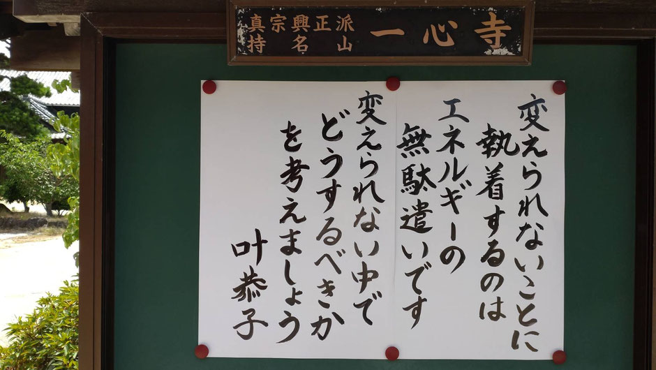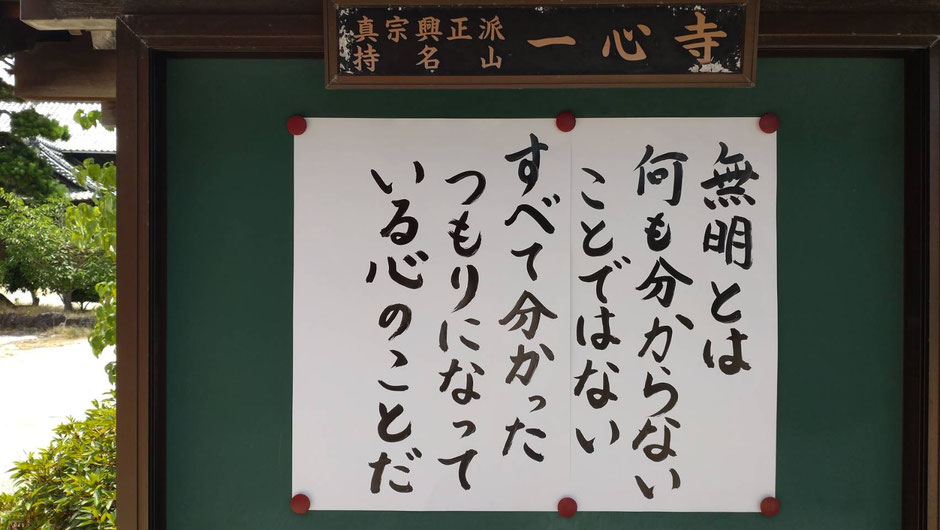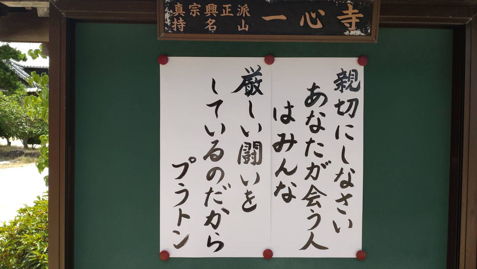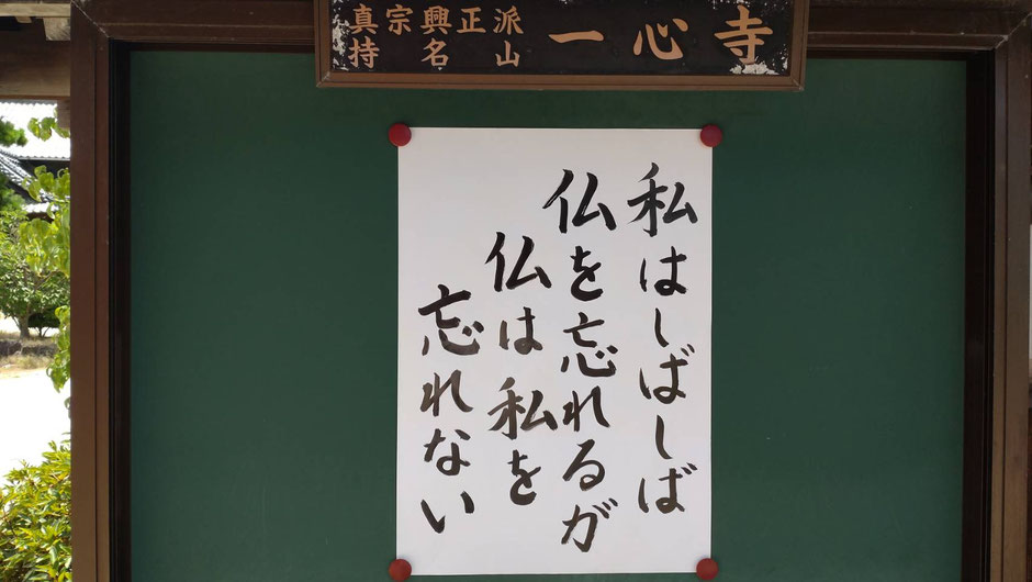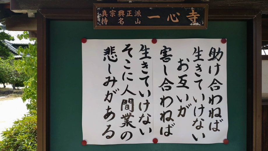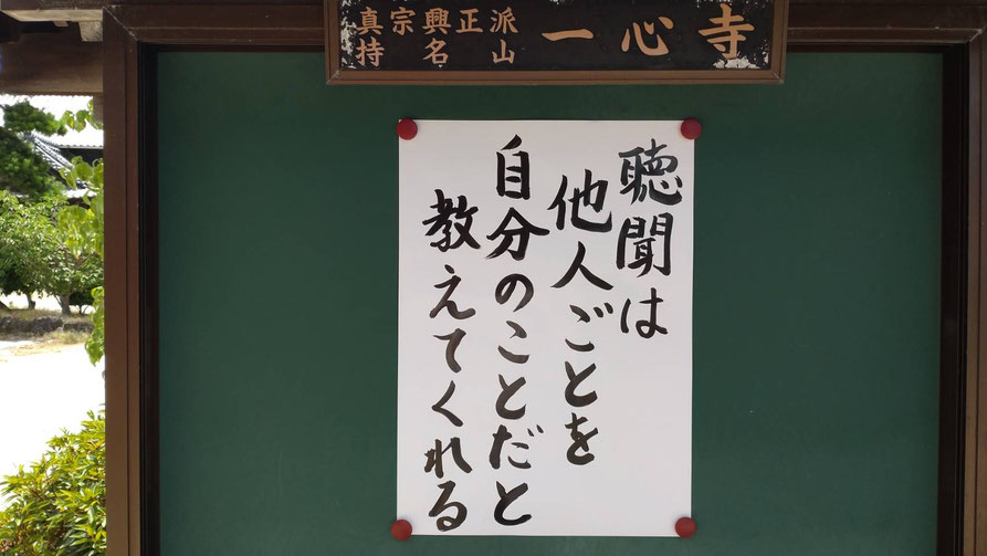 山門の横にある一心寺の掲示板。
